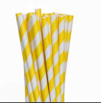 CANUDO DE PAPEL LISTRADO - BRANCO/AMARELO - Pacote com 12 unidades