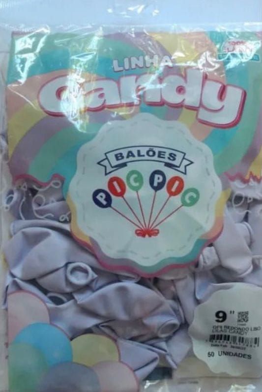BALÃO LISO REDONDO - PIC PIC Nº 09 - Lilás ( CANDY ) - Pacote com 50 unidades